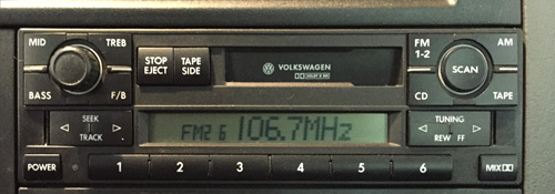 We knew beforehand that our Eurovan Weekender was equipped with the factory radio. This is an AM/FM unit with a cassette player. Sounds archaic by both today’s standards and even those from 2003! I had a 2003 Jetta that had a better sound system than that. And who has cassettes anymore? Good grief!